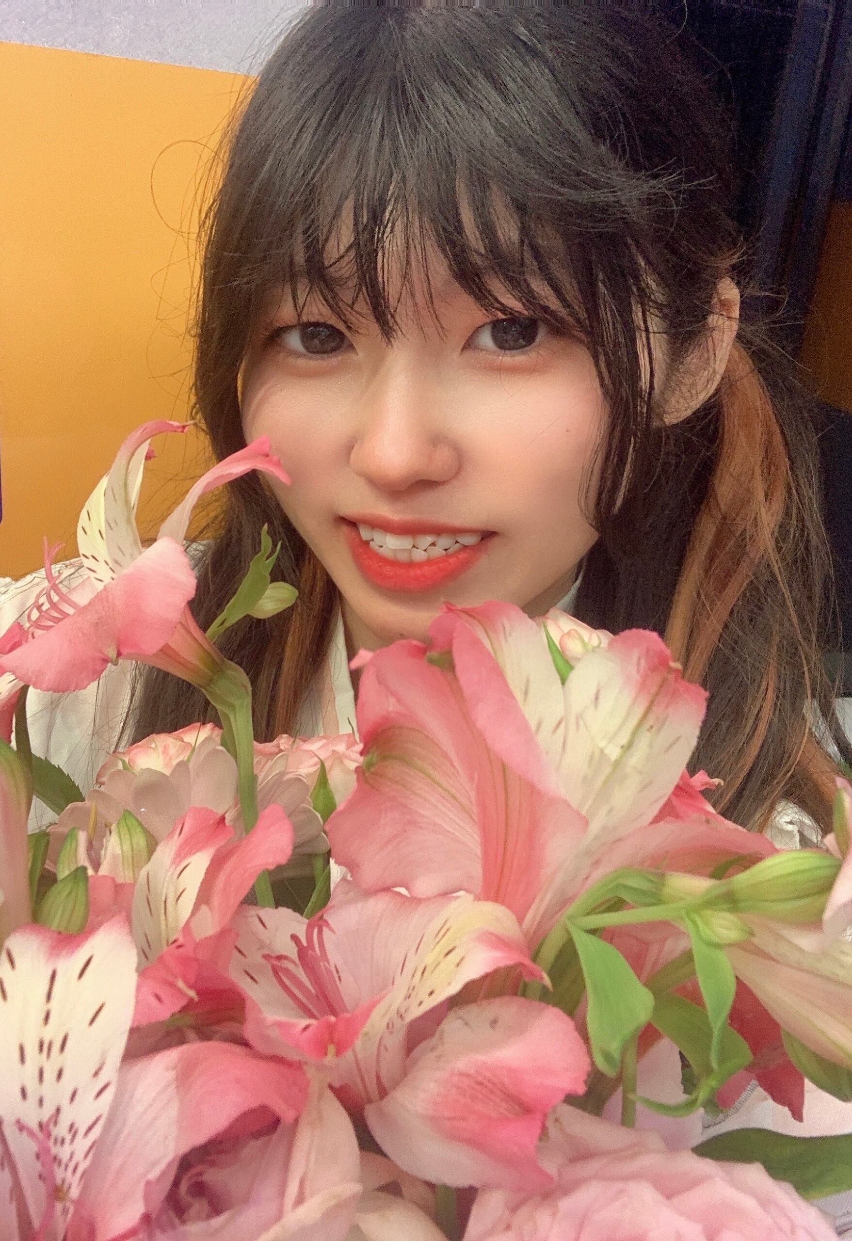 お花を抱えてとったチェキ!
