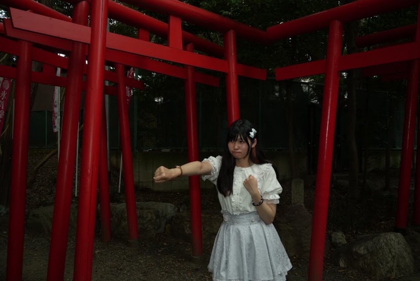 鳥居の中でパンチ練習をしてる珍しいチェキです(笑)